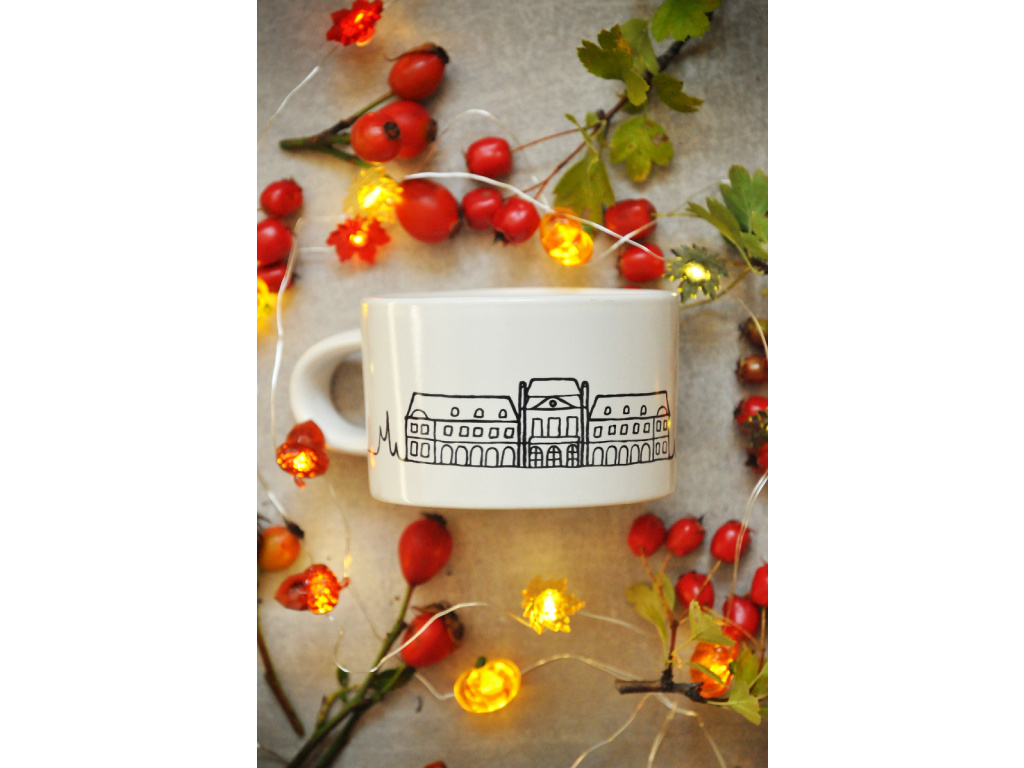 Milujete zámek Dobříš? Pak je makronka hrnek s originální minimalistickou autorskou grafikou tohoto místa to, co vám doma nebo na chalupě nesmí chybět. Tento designový hrnek na kávu i čaj je jako stvořený pro chvilky klidu.